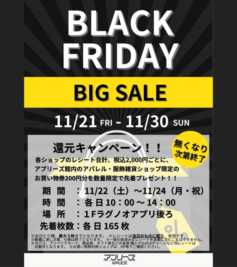 また、期間中、11/22(土)~11/24(月・祝)は、「還元キャンペーン」も開催!