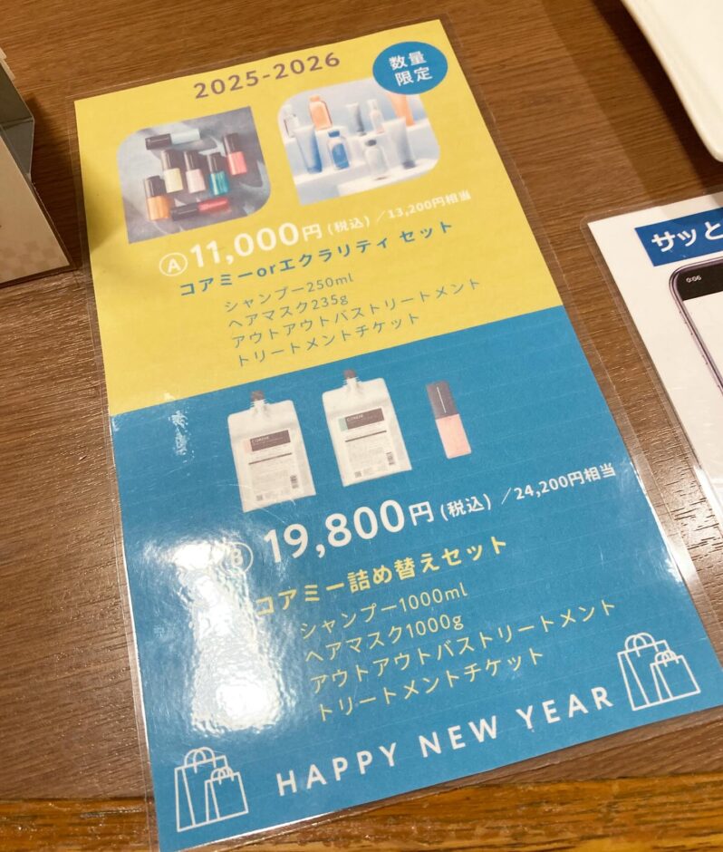 TOP イベント・キャンペーン ショップガイド フロアガイド 施設案内 決済方法 アクセス・駐車場 免税対象店舗 求人情報 お知らせ お問い合わせ 会社案内 個人情報の保護について JR東日本グループコンプライアンス相談窓口 ウェブサイトのご利用について ソーシャルメディアポリシー ホーム イベント・キャンペーン 福袋販売中!! under-colors×picasso 福袋販売中!! 2025/12/15(月) ショップニュース 【4F美容室アンダーカラーズ×ピカソ】で数量限定!福袋を販売しております。 [ A ] :11,000円(税込)/13,200円相当 コアミーorエクラリティセット [ B ]:19,800円(税込)/24,200円相当 コアミ―詰め替えセット トリートメントの割引券付きで大変お得になっております! ご予約も受け付けておりますので気になる方は是非お気軽にスタッフへお問い合わせ下さいませ♪ 一覧へ