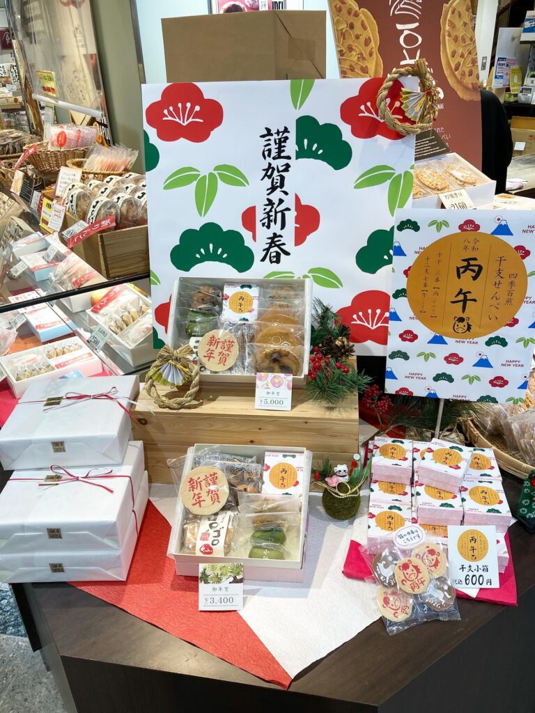 TOP イベント・キャンペーン ショップガイド フロアガイド 施設案内 決済方法 アクセス・駐車場 免税対象店舗 求人情報 お知らせ お問い合わせ 会社案内 個人情報の保護について JR東日本グループコンプライアンス相談窓口 ウェブサイトのご利用について ソーシャルメディアポリシー ホーム イベント・キャンペーン 謹賀新春 しかないせんべい 謹賀新春 2025/12/29(月) ショップニュース 謹賀新春 【1Fしかないせんべい】では、来年の干支『丙午』をモチーフにした馬の絵柄が入ったおせんべいをはじめ、人気商品の詰め合わせを各種ご用意しております。 . 干支小箱や御年賀箱などがあります。 年始のご挨拶にいかがですか? . ご要望に合わせてお詰めいたしますので、お気軽にお声がけくださいませ。 一覧へ