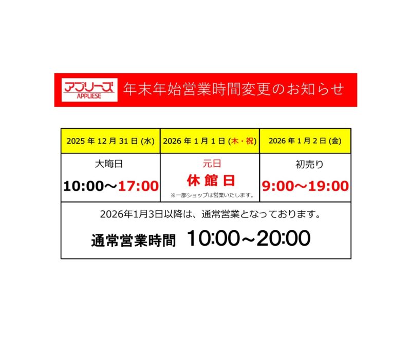 いつも弘前駅ビル・アプリーズをご利用いただきまして、
