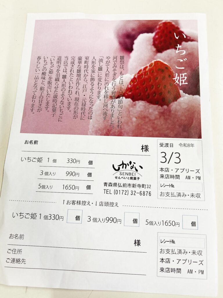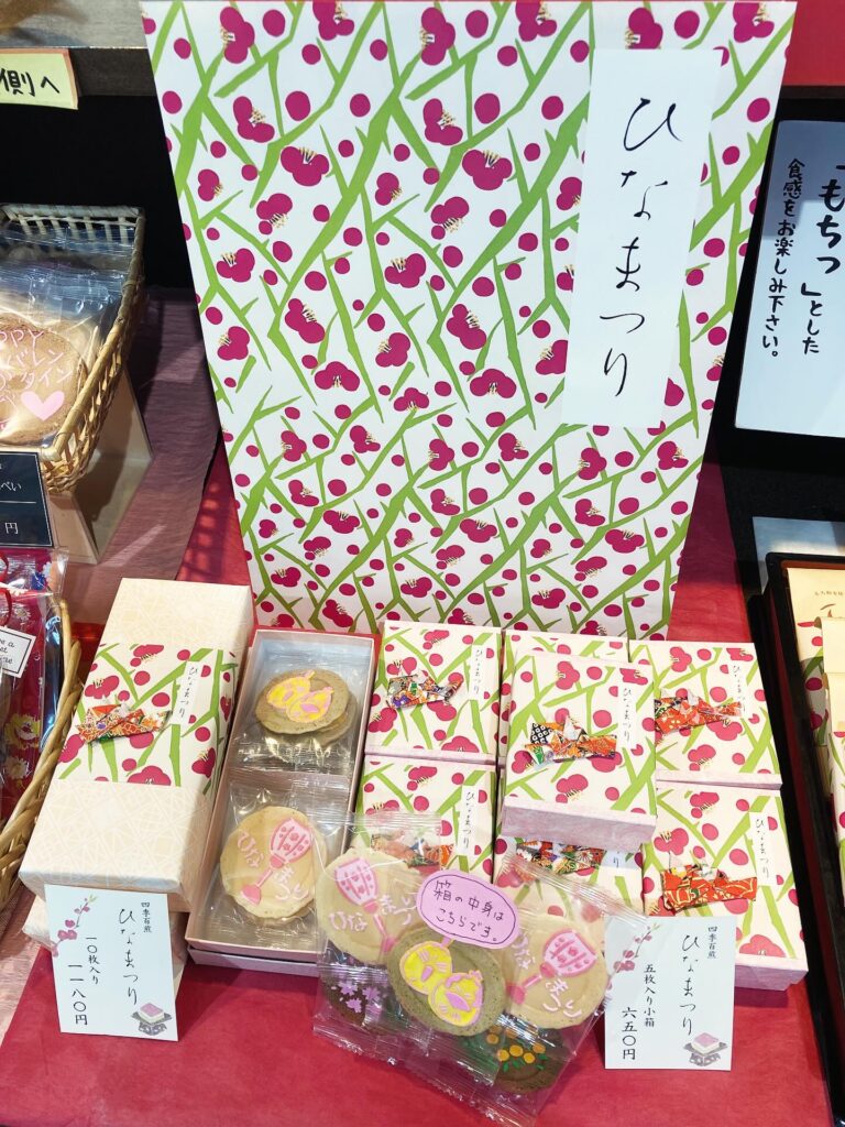 【1Fしかないせんべい】では、ひなまつりに合わせたお菓子を販売しております。