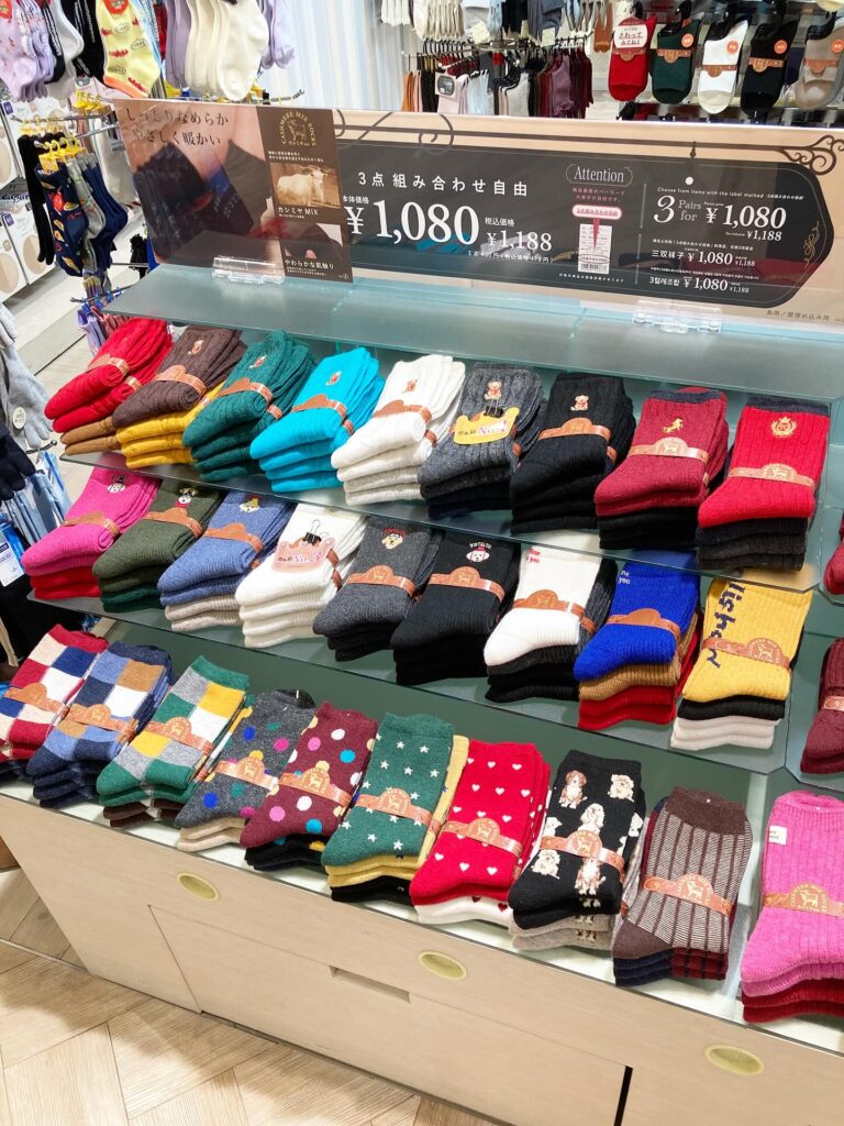 【2Fチュチュアンナプチ】では、カラフルなあったかソックスをご用意しております。