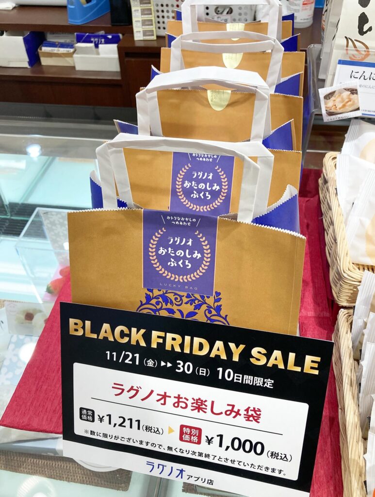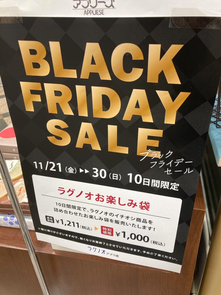 TOP イベント・キャンペーン ショップガイド フロアガイド 施設案内 決済方法 アクセス・駐車場 免税対象店舗 求人情報 お知らせ お問い合わせ 会社案内 個人情報の保護について JR東日本グループコンプライアンス相談窓口 ウェブサイトのご利用について ソーシャルメディアポリシー ホーム イベント・キャンペーン BLACK FRIDAY SALE ラグノオ アプリ BLACK FRIDAY SALE ~11/30(日) 2025/11/22(土) ショップニュース 【1Fラグノオアプリ】では、11/30(日)まで『BLACK FRIDAY SALE』を開催中!! ●ラグノオお楽しみ袋 ラグノオのイチオシ商品を詰め合わせたお楽しみ袋を販売。 通常価格1,211円(税込⇒特別価格1,000円(税込) ※数に限りがございますので、なくなり次第終了とさせていただきます。予めご了承くださいませ。 一覧へ